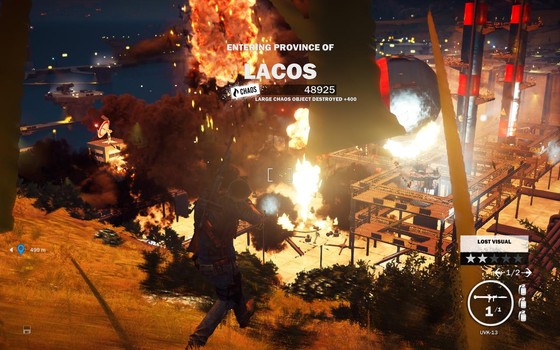 At one point (ok, actually many points) I fell more than 100 feet from an exploding helicopter and face planted into the ground—and I still got up and swaggered off without so much as a limp. (Rico was hurt, but as long as you get to cover he’ll be combat ready in no time.) Just Cause 3 definitely keeps the good times (i.e. blowing sh*t up) rolling.